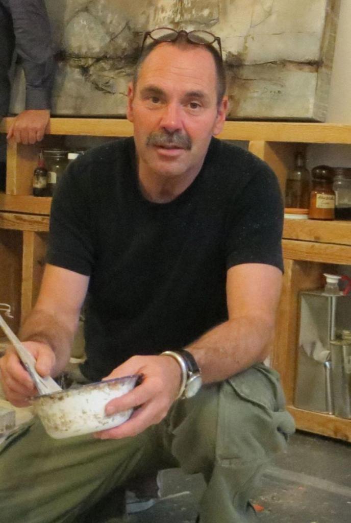 Ook in mijn materiaalkeuze ga ik terug naar de basis. Jarenlang verdiepte ik me in oude recepten. Geïnspireerd door de Russische iconen heb ik jaren met ei tempera op krijtgrond gewerkt. Via de Vlaamse meesters kwam ik op media op basis van hars, Venetiaanse terpentijn, Arabische gom en standolie. Typerend voor mijn laatste werk is de echte, fysieke basis. Voor mijn ‘Aardse kunst’ gebruikt ik leem, zand, klei, krijt en aarde.