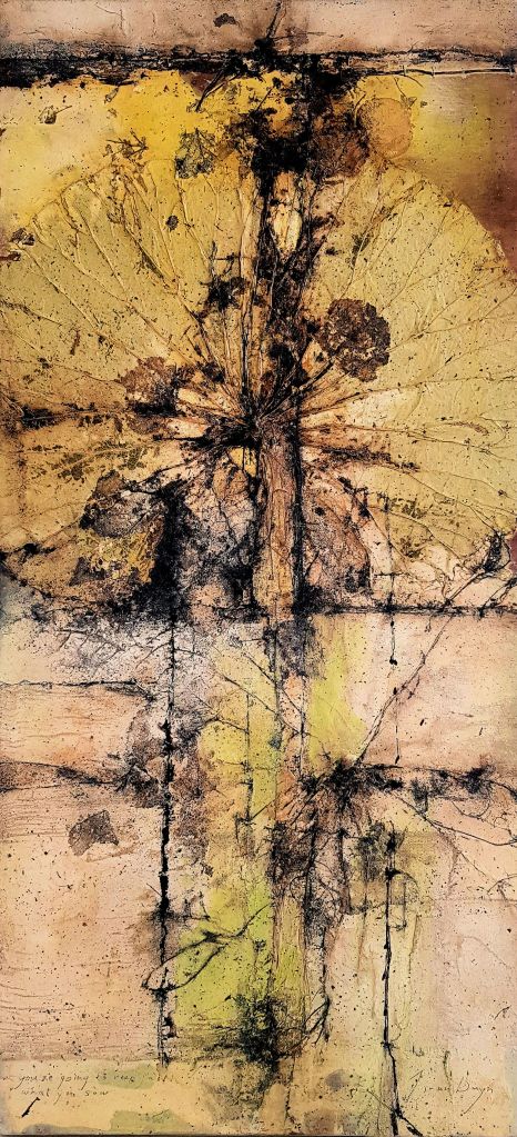 In stilte, zonder herinnering € 1950,- Formaat 122 bij 122 cmYou`re going to reap just what you sow € 1750,-Formaat 122 bij 62 cm