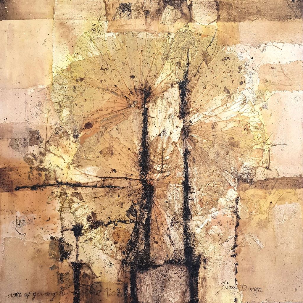 Van opgevangen najaarslicht € 1950,- Formaat:122 bij 122 cmVoorbestemd toeval € 1950,- Formaat 122 bij 122 cmGonna be leaving soon € 1950,- Formaat 122 bij 122 cm
