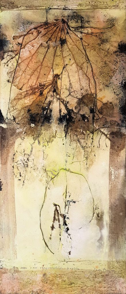Verloren gewaande beeldenAls milde dauwAchter draden in blauwIn het voorbijgaan Met de belofte van terugkeer Canto Ostinato